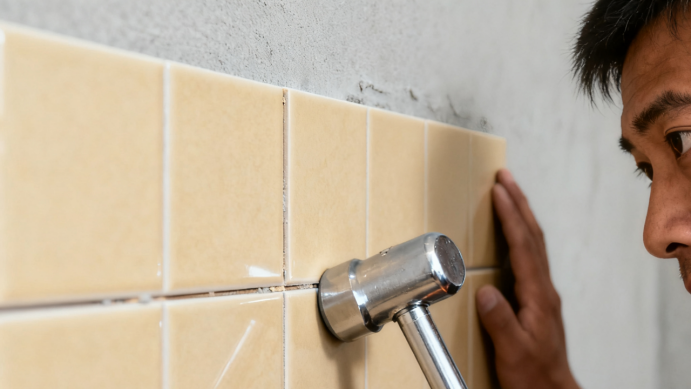 -铺贴后用空鼓锤敲击检查,边缘、角落重点排查。