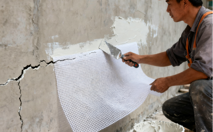 -新旧墙体交接处、吊顶接缝处贴网格布或牛皮纸,防止开裂。