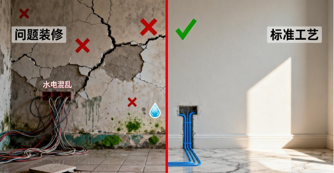 -拍照存档,记录水管、电线走向,避免后期打孔误损。